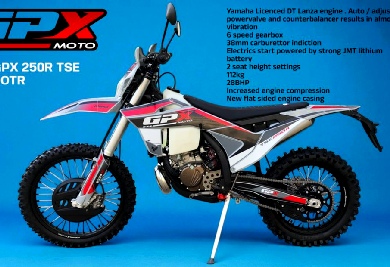 The most affordable and highest performance 2-stroke in its class! It comes equipped with a smooth counter balanced engine m made by Loncin under Yamaha licence. There is a bottom mounted electric start and kick start back up as well as an automatic fan kit. The chassis is simply perfect for racing with fully adjustable alloy SZC closed cartridge forks and alloy fully adjustable rear shock. No other bike on the market offers the performance, value and features of the TSE 250R from GPX Moto UK. We are Norfolk's GPX dealer with a full range of spares in stock. For further details, call us on: 01603 722800.